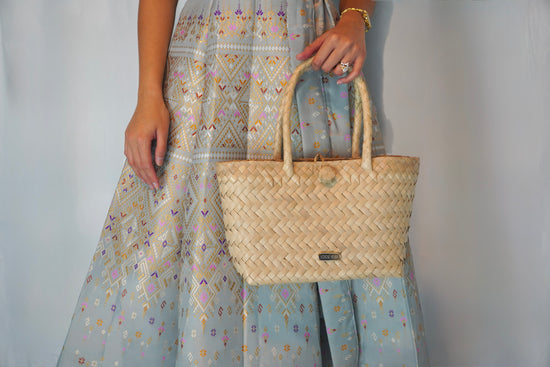 Crafted from hand-stripped palm fibers, commonly buri or tikog, the weave reflects a tradition passed down through generations in rural Filipino communities. For centuries, these materials have been harvested sustainably, dried under the sun, and woven by hand into everyday vessels—baskets for harvest, bags for market days, carriers for life’s essentials.
